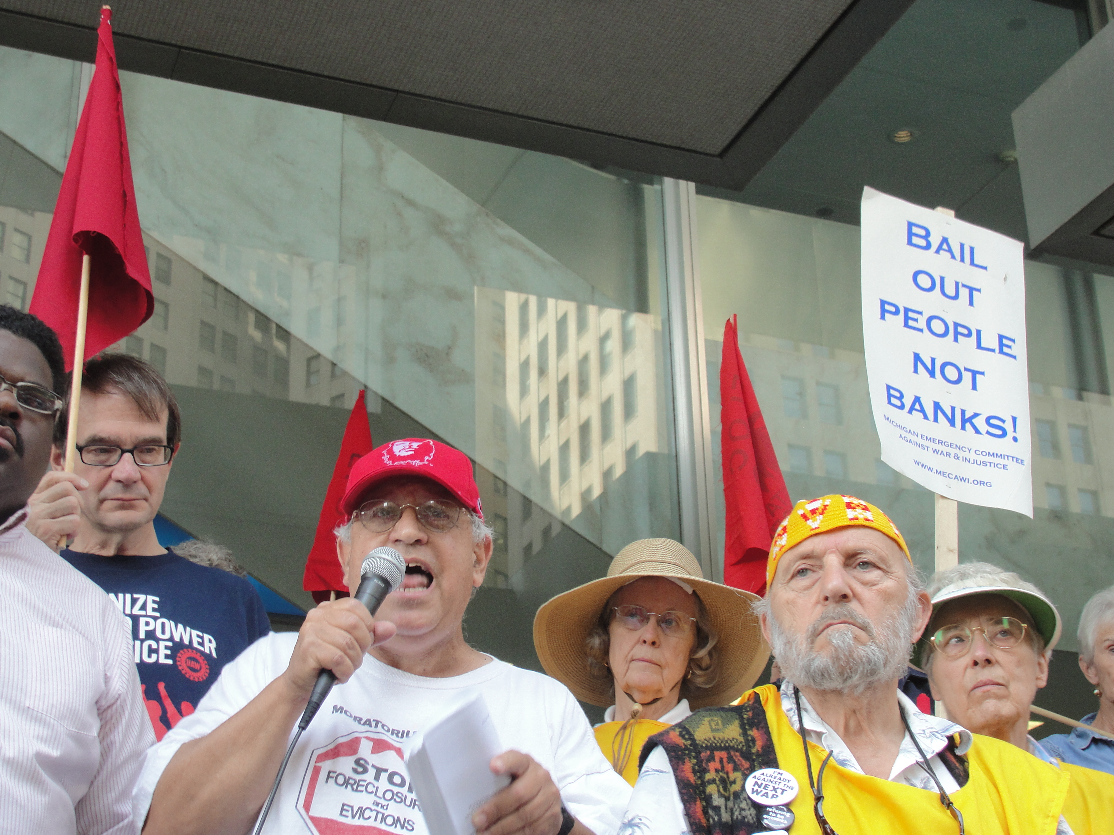 Jerry Goldberg, a Detroit People’s Attorney and leader of the Moratorium Now Coalition, will speak at this meeting about how the banks-in complicity with the federal government-are responsible for the foreclosure epidemic. He will also speak on the immediate demand for a federal moratorium on foreclosures. A moratorium would allow a homeowner facing foreclosure to go to court for an automatic stay to delay the sheriff’s sale. The court would set a reasonable repayment plan based in part on the borrower’s income and ability to pay. The moratorium law would be in effect for a period determined by the people, meaning that anyone in foreclosure at the time the law is enacted, or is placed in foreclosure during that period, could take advantage of the moratorium. Goldberg will also speak on the demand for a moratorium on ‘debt service’ to the banks.