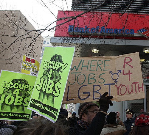 Categories Uncategorized Photos: Occupy 4 Jobs Protests At Bank Of America in NYC on Dr. King Day Jan. 16 Post author By wibailoutpeople Post date January 17, 2012 http://www.flickr.com/photos/drdunk_greg/sets/72157628903608397/ Dr. King Day, Jan. 16. Occupy 4 Jobs protest at Bank of America in NYC. ### Share this: Share on X (Opens in new window) X Share on Facebook (Opens in new window) Facebook Like Loading... Related ← Support For Striking Machinists At Dr. King Milwaukee March Jan. 16 → Occupy Philly (and many others too!) MLK March for Economic Justice