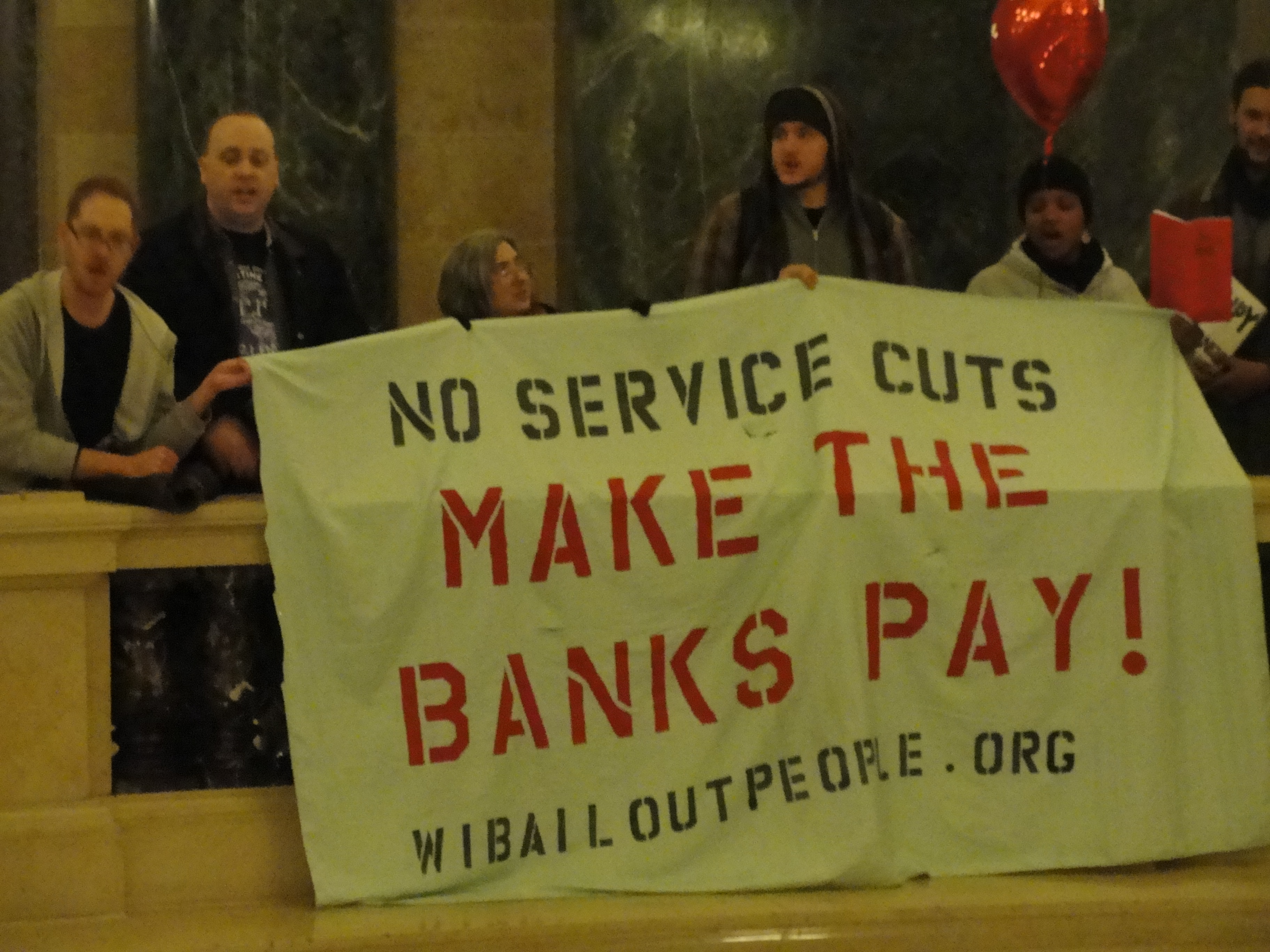 Categories Uncategorized Photos From Native People’s Protest & Scott Walker Protest At The State Capitol In Madison Jan. 25 Post author By wibailoutpeople Post date January 26, 2012 http://www.facebook.com/media/set/?set=a.2848173934717.129237.1570502599&type=1 At state capitol in Madison Jan. 25, 2012. At the state capitol in Madison Jan. 25, 2012. Inside the capitol the people protest Scott 'I love capitalism' Walker's 'state of the state' speech of, by and for the 1% Jan. 25, 2012. ### Share this: Click to share on X (Opens in new window) X Click to share on Facebook (Opens in new window) Facebook Like Loading... Related ← Milwaukee: Naomi Klein’s ‘Shock Doctrine’ Screening Jan. 31 → Occupy4Prisoners: National Day In Support Of Prisoners 2.20.2012
