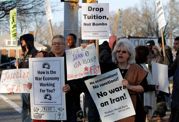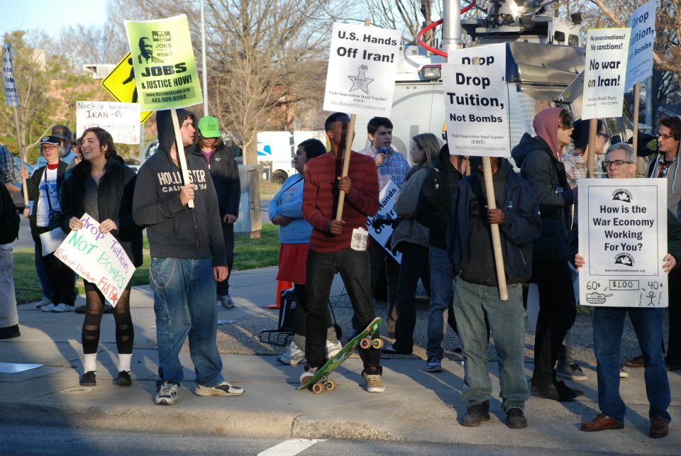 Categories Uncategorized Raleigh, North Carolina Feb. 3, ‘No War On Iran’ protest Post author By wibailoutpeople Post date February 4, 2012 Feb. 3, 2012 Raleigh, North Carolina. Feb. 3, Raleigh, North Carolina. ### Share this: Click to share on X (Opens in new window) X Click to share on Facebook (Opens in new window) Facebook Like Loading... Related ← Tell Darden: No more segregated restaurants → At Milwaukee Feb. 4 Protest, Dozens Say: ‘No War On Iran!’