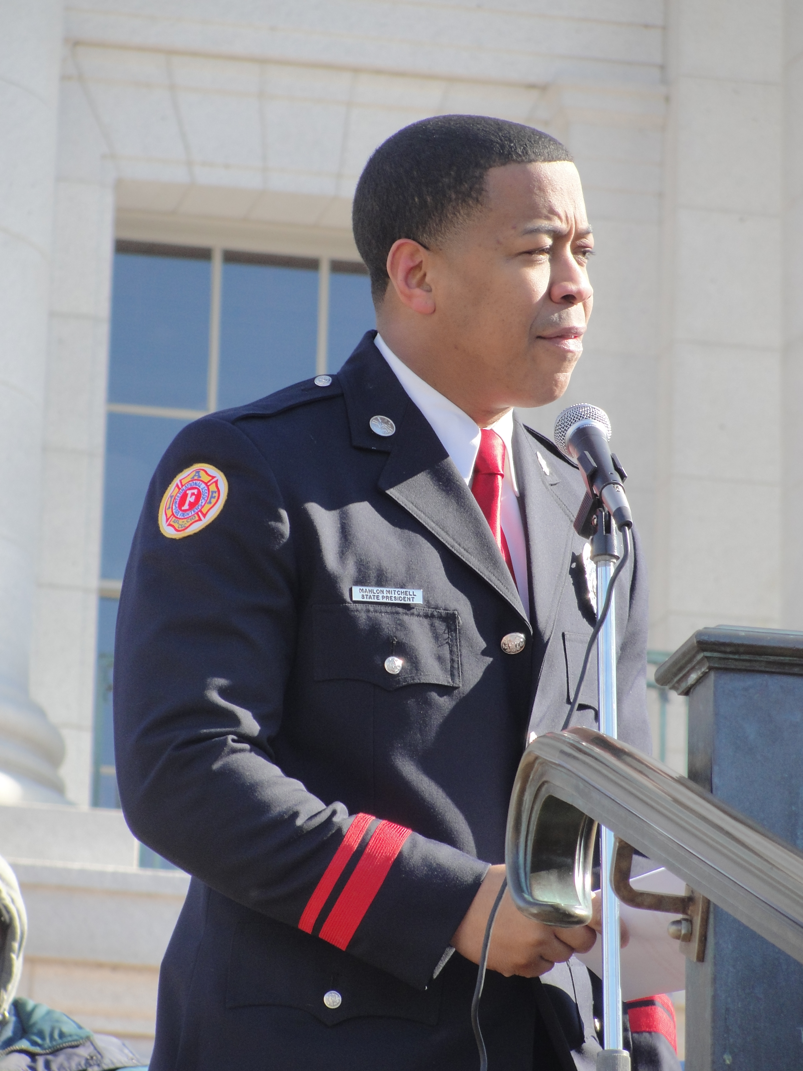 Mr. Mahlon Mitchell speaking at the 1 year anniversary celebration of the WI people's uprising at the state capitol in Madison, WI Feb. 11, 2012.Crowd celebrating 1 year anniversary of WI people's uprising at state capitol in Madison, WI Feb. 11, 2012.WI BOPM at the state capitol in Madison Feb. 11, 2012 celebrating 1 year anniversary of WI people's uprising.