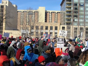 001 Published February 11, 2012 at 3648 × 2736 in 1 Year Anniversary of WI People’s Uprising, Madison Feb. 11, 2012 Crowd celebrating 1 year anniversary of WI people’s uprising at state capitol in Madison, WI Feb. 11, 2012.