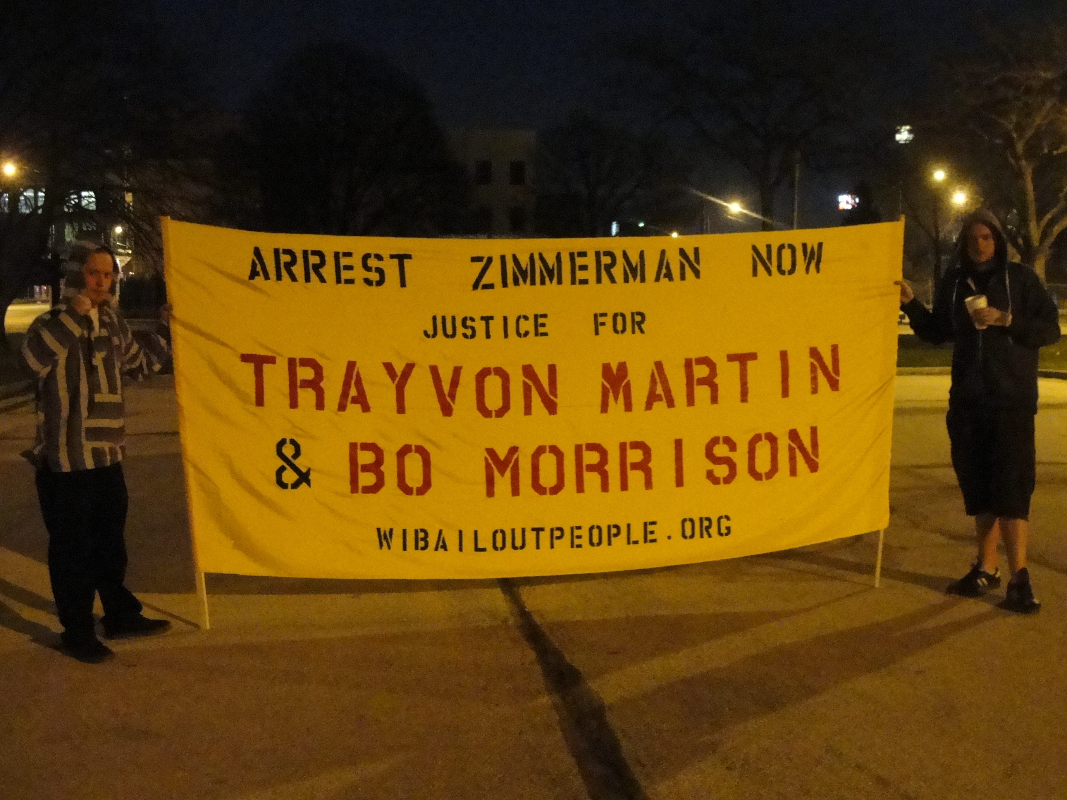Categories Uncategorized Trayvon Martin Protest Vigil March 22 in Milwaukee Post author By wibailoutpeople Post date March 22, 2012 Milwaukee, WI March 22, 2012. ### Share this: Click to share on X (Opens in new window) X Click to share on Facebook (Opens in new window) Facebook Like Loading... Related ← Milwaukee, March 24: Protest Santorum and Americans for Prosperity → Milwaukee: Youth Empowered in the Struggle (YES) Fights for Student Bill of Rights