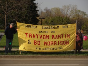 Categories Uncategorized March 26: Justice For Trayvon Martin in Eau Claire Post author By wibailoutpeople Post date March 26, 2012 http://www.facebook.com/events/299182126819266/ March 25, 2012 West Bend, WI. ### Share this: Click to share on X (Opens in new window) X Click to share on Facebook (Opens in new window) Facebook Like Loading... Related ← Pack The Court March 29 In Solidarity With Bryan G. Pfeifer & Andy Andre → Carlos Montes In Court on Tuesday, March 27, Call-In Day