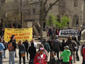 Categories Uncategorized March 27 UW Madison ‘Justice 4 Trayvon Martin & Bo Morrison’ Protest Post author By wibailoutpeople Post date March 27, 2012 At Library Mall at UW-Madison March 27, 2012. At Library Mall at UW-Madison March 27, 2012. At Library Mall at UW-Madison March 27, 2012. More photos: http://www.facebook.com/media/set/?set=a.280557075357149.68927.151521811594010&type=3 ### Share this: Click to share on X (Opens in new window) X Click to share on Facebook (Opens in new window) Facebook Like Loading... Related ← Rally For Trayvon Martin Baltimore, MD → Wisconsin’s Message to Mayor Rahm