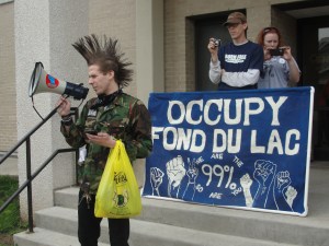 Categories Uncategorized Photos from Occupy Fond du Lac Peace Rally and Occupy WI First Ever GA Post author By wibailoutpeople Post date May 6, 2012 From May 5 in Fond du Lac: http://www.facebook.com/media/set/?set=a.307189499360573.74600.151521811594010&type=1 May 5, 2012 Fond du Lac. Speaking out against the prison industrial complex May 5, 2012 in Fond du Lac. Fond du Lac, May 5, 2012. ### Share this: Share on X (Opens in new window) X Share on Facebook (Opens in new window) Facebook Like Loading... Related ← President Obama Calls for Continued War in Afghanistan Through 2014 and Beyond / Protest NATO → Free Chicago Bus Trips to Protest NATO