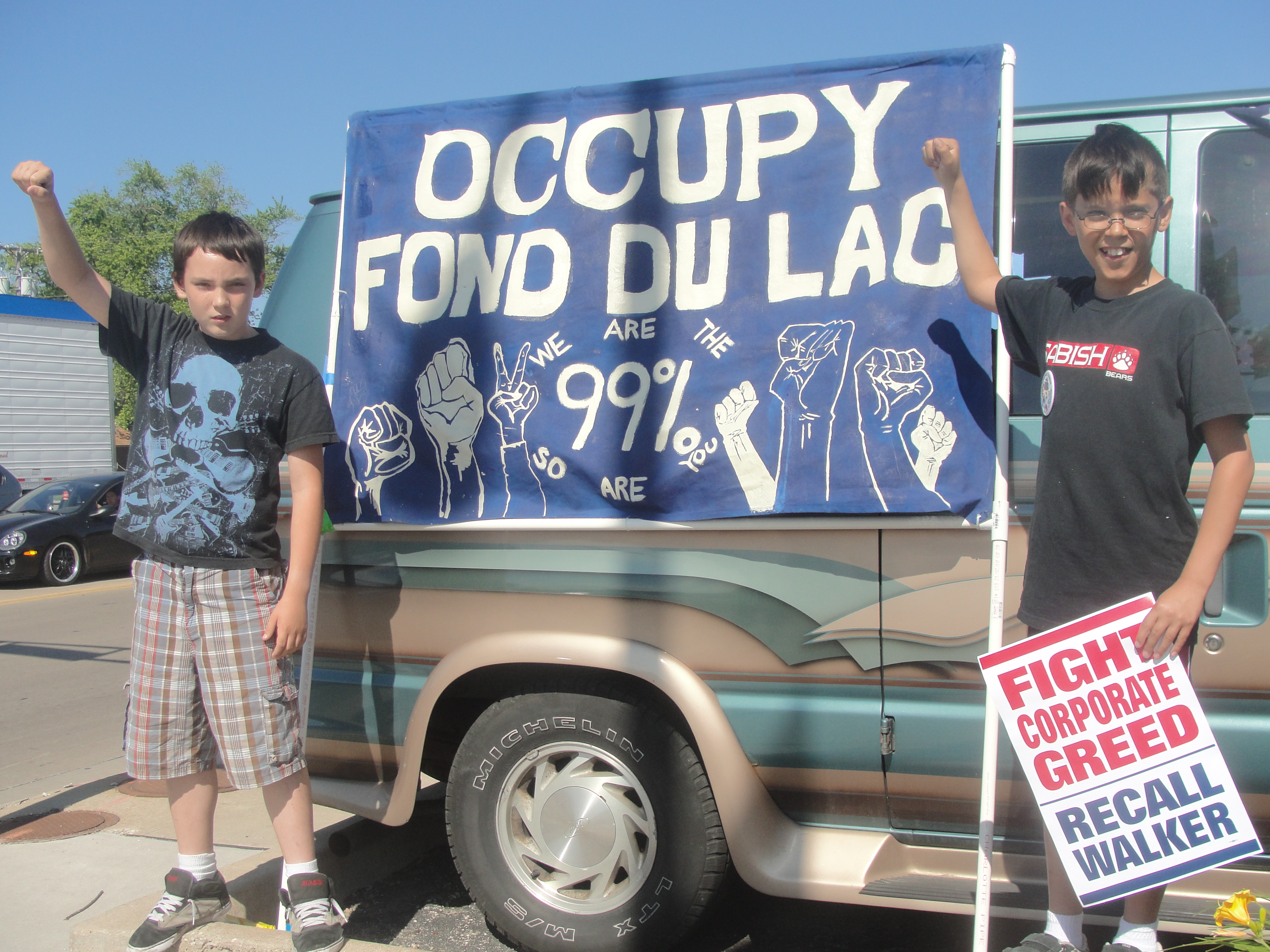 Categories Uncategorized Occupy Fond du Lac Street Speak-Out in Fond du Lac June 5 Post author By wibailoutpeople Post date June 5, 2012 http://www.facebook.com/media/set/?set=a.325934544152735.78000.151521811594010&type=1 A member of the Children’s Caucus Against Scott Walker at the Occupy Fond du Lac Street Speak-Out June 5, 2012 in Fond du Lac. June 5, 2012 in Fond du Lac. June 5, 2012 in Fond du Lac. ### Share this: Share on X (Opens in new window) X Share on Facebook (Opens in new window) Facebook Like Loading... Related ← TODAY, June 5: Recall Events Statewide → WI AFL-CIO Recall Updates