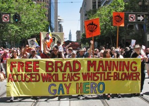 Contingents in support of Bradley Manning are being organized at Pride events in San Francisco, Chicago and New York City. We encourage everyone to stand in support of Bradley Manning.