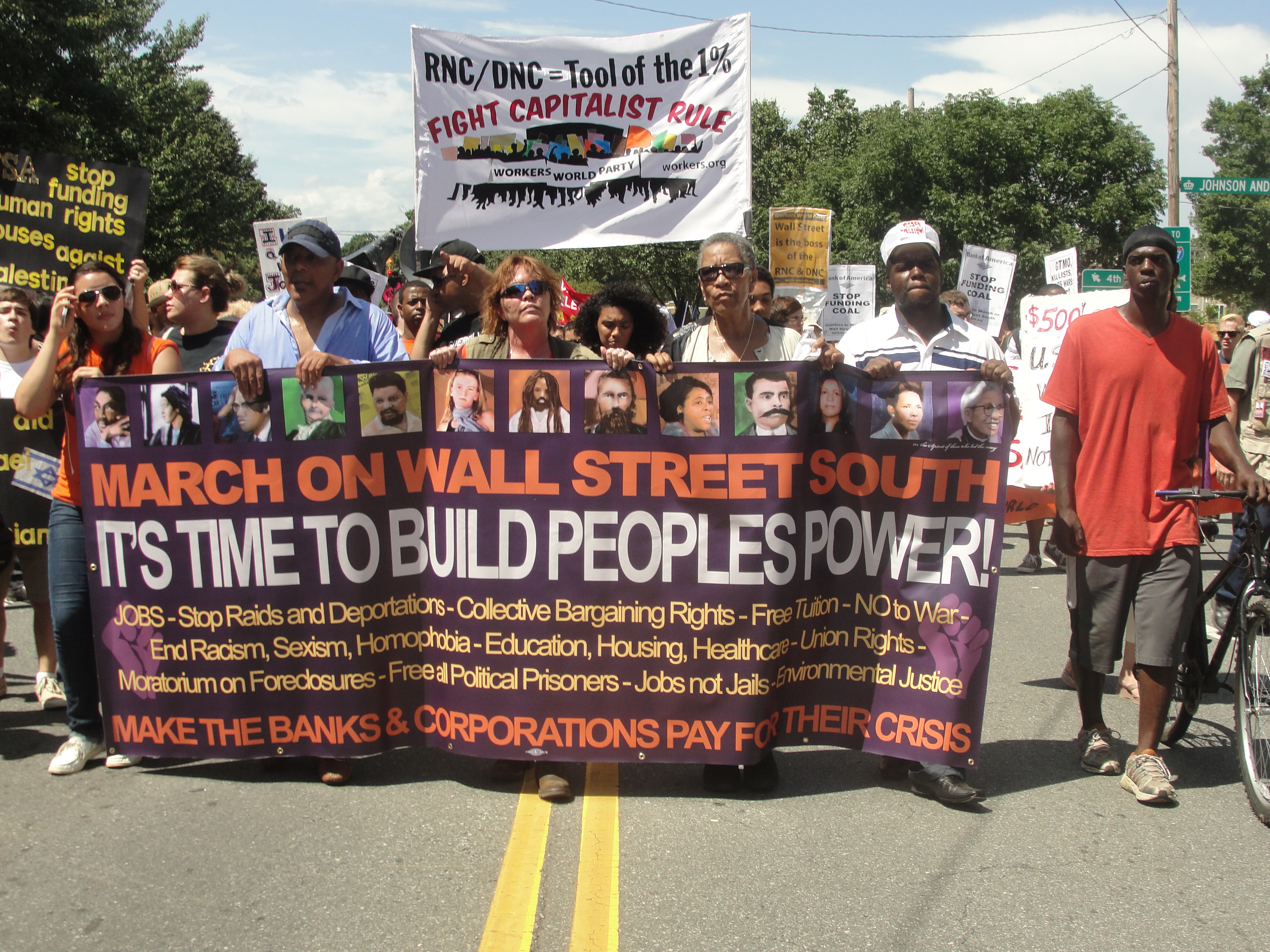 Categories Uncategorized Photos from March on Wall Street South Sept. 2 Rally & March Post author By wibailoutpeople Post date September 3, 2012 Sept. 2, 2012 Charlotte, North Carolina. More photos: http://tinyurl.com/95ec8pg ### Share this: Share on X (Opens in new window) X Share on Facebook (Opens in new window) Facebook Like Loading... Related ← March on Wall Street South is Here, Livestream → Southern Workers Assembly in Charlotte Sept. 3