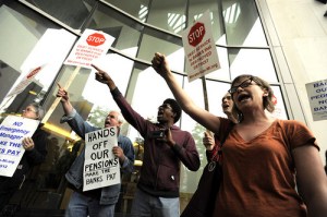Detroit Moratorium NOW! Coalition protest outside the Wayne State University Law School on June 10, 2013. The demonstrations called for the end of emergency management and a moratorium on debt service. , a photo by Pan-African News Wire File Photos on Flickr.