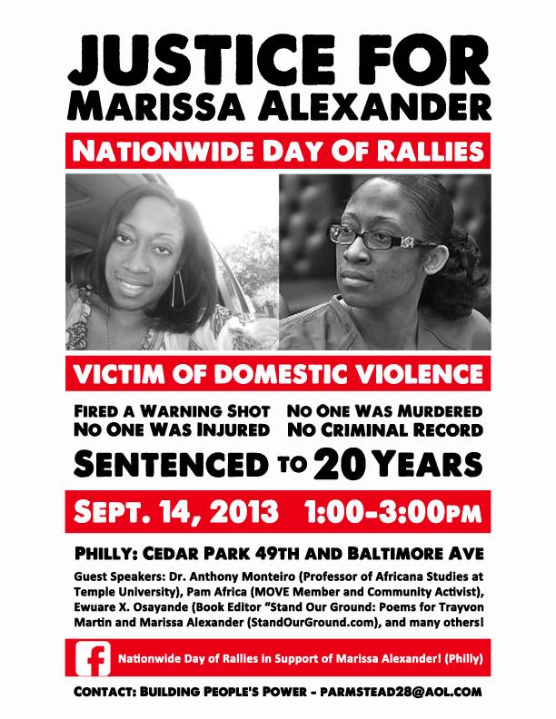 Categories Uncategorized Nationwide, Sept. 14: Rallies in Support of Marissa Alexander Post author By wibailoutpeople Post date September 1, 2013 https://www.facebook.com/buildingpeoples.powerphilly Share this: Click to share on X (Opens in new window) X Click to share on Facebook (Opens in new window) Facebook Like Loading... Related ← New WI BOPM Flyer: Make The Banks Pay! Jobs Not Racism! → Milwaukee, Sept. 21: ‘Public Education Is A Civil Right’ March & Rally