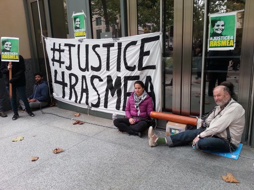 — Spread the word! When publicizing on social media, use the hashtags #Justice4Rasmea and #FreeRasmeaNow.