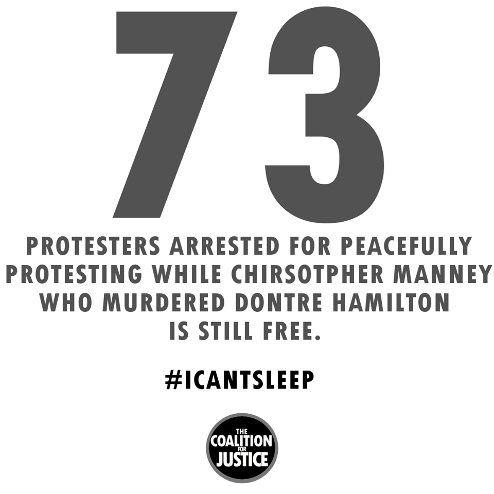 73 protesters arrested today in Milwaukee for peacefully protesting, while its been 8 months since Christopher Manney murdered Dontre Hamilton but is still free.