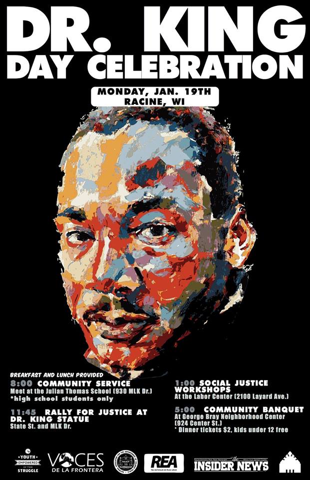 From there, we will go to the Racine Labor Center (2100 Layard Ave.) where we will have workshops focused on issues of social justice. Workshop specifics TBA.