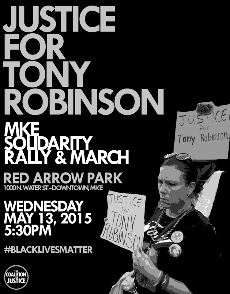 May 13 we will host a solidarity rally and march for Tony Robinson, the Robinson Family, and our justice family in Madison. We have been in contact with the Robinson family and they gave their blessing for us to rally and march in Tony’s honor!