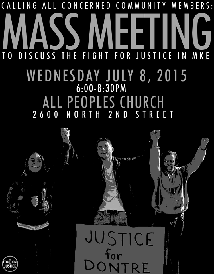 Please join us Wednesday July 8, 2015 at All Peoples Church as we get set to convene our first mass meeting of the summer. There have been many issues arising in our city that demand attention, and we want to ensure that we are united in our approach to making Milwaukee a better place tomorrow than it is today.