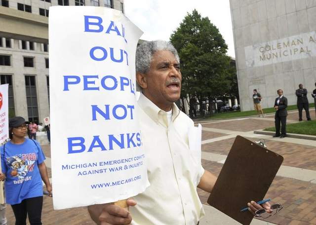 Thousands of households face foreclosure and eviction in neighborhoods already devastated by years of predatory mortgage lending by the banks. Some 25,000 families are facing water shutoffs while the banks got paid $537 million on interest rate swindles. Schools are shuttered while property taxes are diverted to pay off debt service to the banks. Youth face joblessness and the school to prison pipeline. If they have a job it does not pay enough to live on.