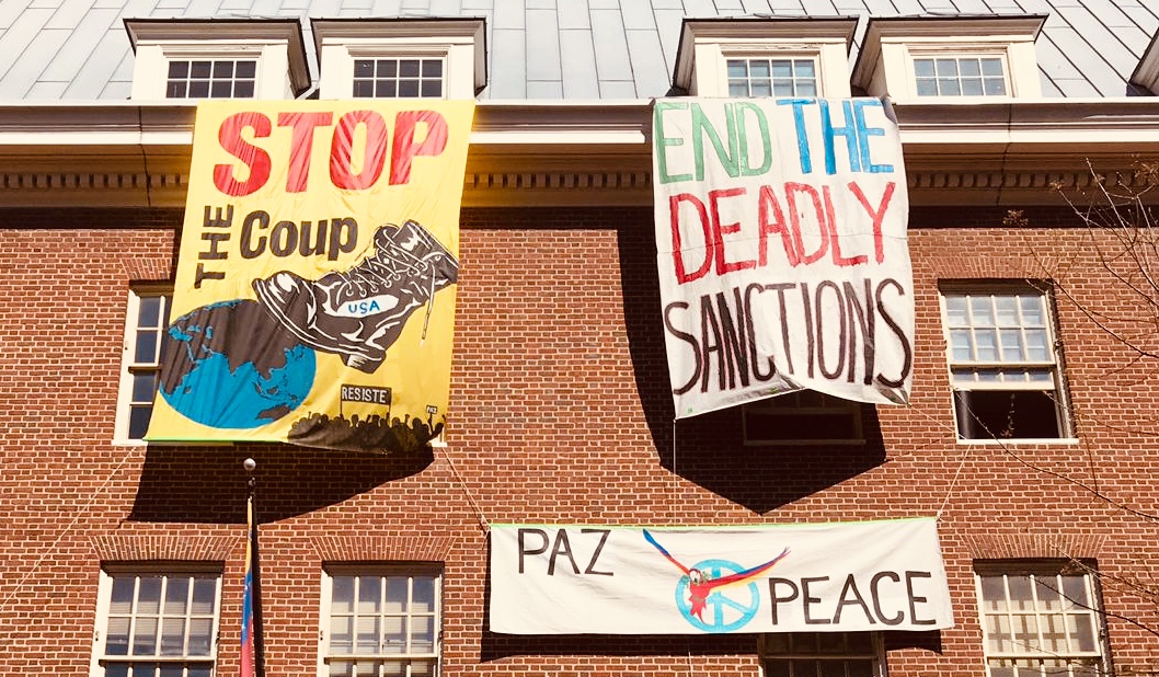 Can you get to DC now? If so, make your way there! The Embassy Protection Collective is calling for emergency support as their electricity gets cut off in another illegal act to force an eviction. They have been putting their bodies on the line for the past 30 days to prevent an escalation of violence in Venezuela. They are demanding that the US Administration respect international law and stop the attacks on legal tenants of the Venezuela Embassy in DC.