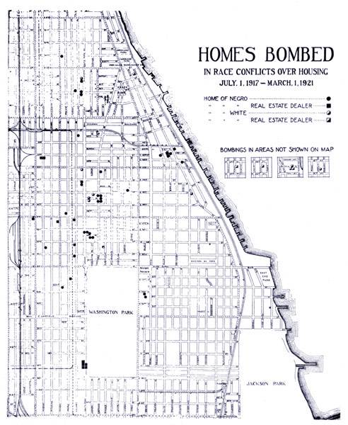 Between July 1917 and March 1921, 58 Black homes were bombed. Among the few terrorists arrested for the bombings was James Turner, a clerk at the real estate firm of Dean & Meagher. A six-year-old Black child was killed when a bomb was thrown into a building on Chicago’s Indiana Avenue.