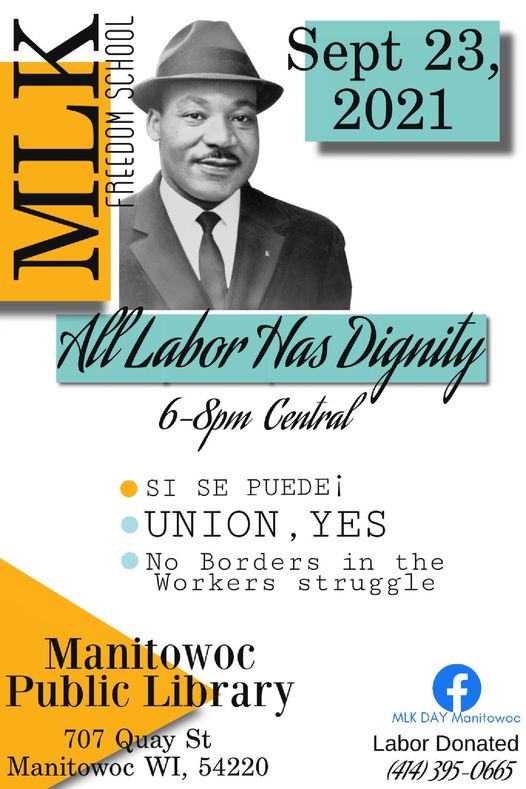 The MLK Freedom School is in honor of Dr. Martin Luther King Jr. and Mrs. Coretta Scott King and their civil and human rights legacy. The Freedom School, taking place in Fall 2021, in Manitowoc, will feature events that detail the central focuses of the King’s lives and how their contributions inspire poor and working people today to build a better world. There’ll be featured speakers from Wisconsin and across North America and opportunities to become engaged in today’s civil and human rights activities. All events will have cultural components.