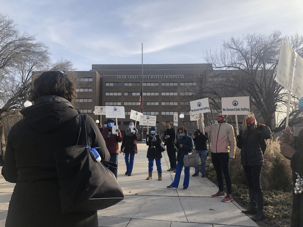 Nurses, dietitians, pharmacists and social workers at Howard University Hospital – members of the DC Nurses Association – on Friday announced they’ll hold a one-day strike beginning 7:30 AM Monday morning, April 11, to demand a fair contract and safe staffing to protect patients.At issue are pay cuts and staffing issues. “It really comes down to treating us with dignity and respect,” said RN Jeanette Ethridge. “They are understaffing in the hospital, and they are taking from us as costs continue to rise.” Howard University in 2020 turned hospital management over to corporate giant Adventist Health, which posted over $100 million in profits last year, while DCNA nurses say staffing issues have gotten worse.