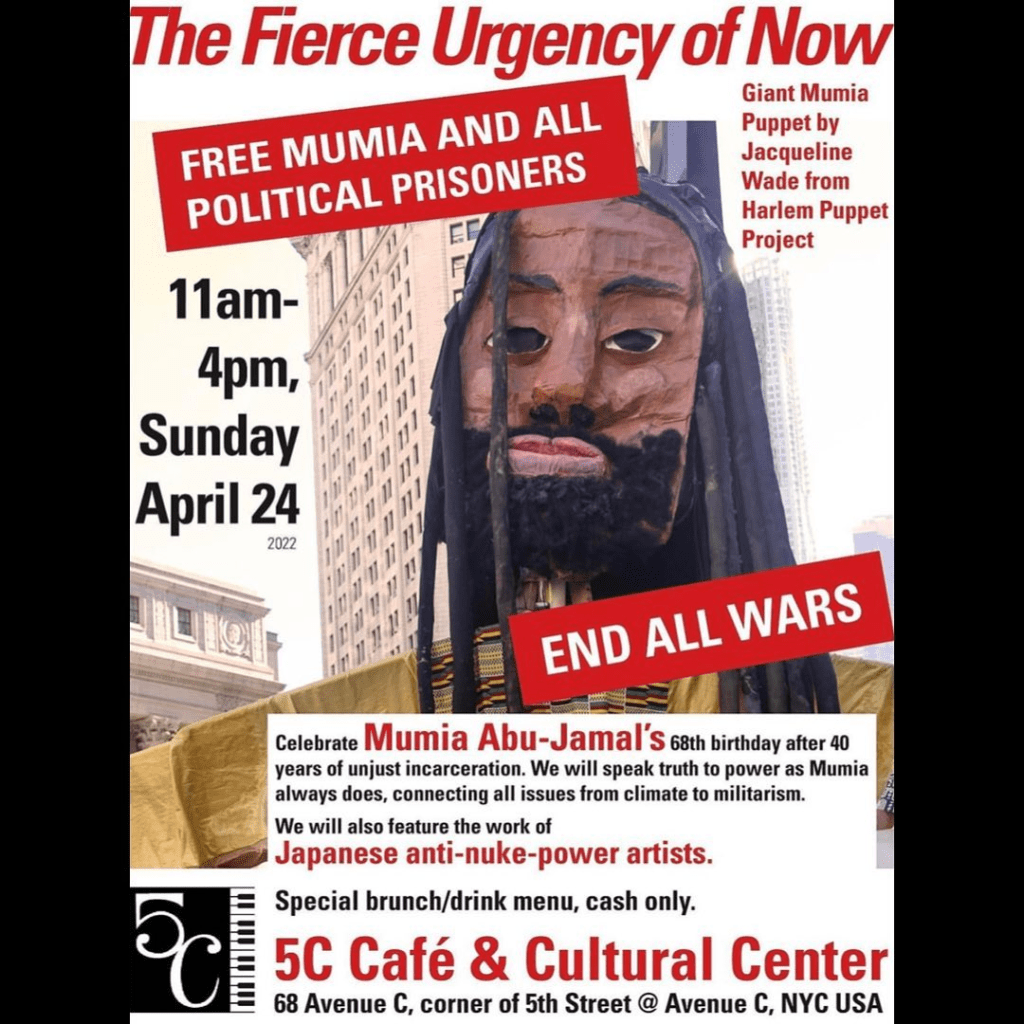 Categories Uncategorized NYC, April 24, 2022: Mumia Abu-Jamal 40 years in Prison, Fight the Injustice and Release Him Now! Post author By wibailoutpeople Post date April 21, 2022 Love Not Phear Share this: Share on X (Opens in new window) X Share on Facebook (Opens in new window) Facebook Like Loading... Related ← Cops Off Our Campuses! Free Mumia Abu-Jamal Teach-In April 24, 2022 → Kim Iversen: Former NATO Analyst & Top UN Official Says THIS Is The REAL Reason For War In Ukraine