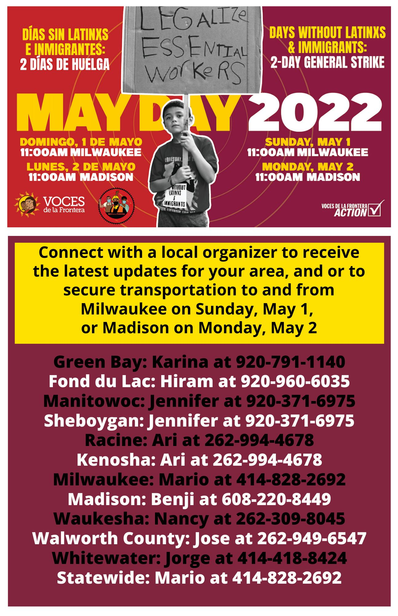 Categories Uncategorized May Day 2022 – Milwaukee May 1 / Madison May 2 – NO BORDERS IN THE WORKERS’ STRUGGLE! Post author By wibailoutpeople Post date April 30, 2022 Voces de la Frontera Voces de la Frontera Share this: Click to share on X (Opens in new window) X Click to share on Facebook (Opens in new window) Facebook Like Loading... Related ← “Turn the Guns Around” – Interview with John Catalinotto (Part 1) → Thousands Take to the Streets in Milwaukee for May Day 2022!