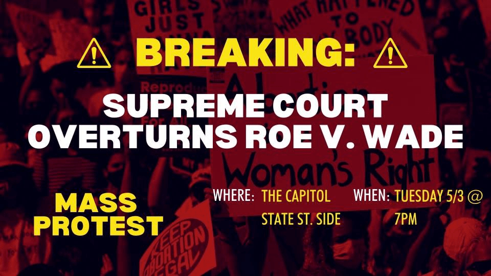 Categories Uncategorized Madison, May 3, 2022: All out for Emergency Protests: Supreme Court Overturns Roe! Fight back to defend abortion rights! Post author By wibailoutpeople Post date May 3, 2022 https://fb.me/e/4TNS11D6m Share this: Share on X (Opens in new window) X Share on Facebook (Opens in new window) Facebook Like Loading... Related ← Milwaukee, May 7, 2022: Defend Roe v. Wade! Rally & March → Planned Parenthood of Wisconsin: Fight Back to Defend Abortion Rights! Rallies in Madison May 3 and in Milwaukee May 4 and 7, 2022