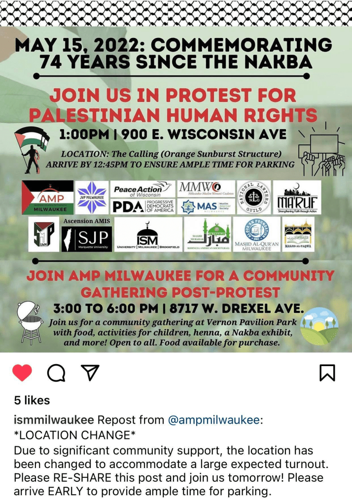 Categories Uncategorized Milwaukee, May 15, 2022: Israeli is an Apartheid State – 74 Years Since the Nakba Post author By wibailoutpeople Post date May 14, 2022 #FreePalestine Share this: Click to share on X (Opens in new window) X Click to share on Facebook (Opens in new window) Facebook Like Loading... Related ← Planned Parenthood Advocates of Wisconsin → FREE PALESTINE – FROM THE RIVER TO THE SEA!
