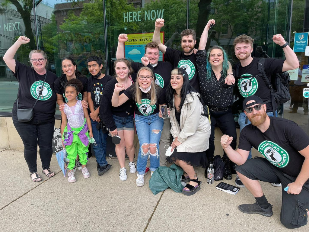 Categories Uncategorized Starbucks Workers Rolling On Nationwide; Chicago, Seattle (and Many More) Baristas Vote Union! Post author By wibailoutpeople Post date May 29, 2022 Meet the baristas at the first unionized Starbucks stores in Chicago! / SBWorkersUnited Share this: Click to share on X (Opens in new window) X Click to share on Facebook (Opens in new window) Facebook Like Loading... Related ← May 29, 2022: (Online) Eyewitness Donbass & Russia – Analysis → Milwaukee, June 1, 2022: Justice for Jay Anderson Jr. Hearing