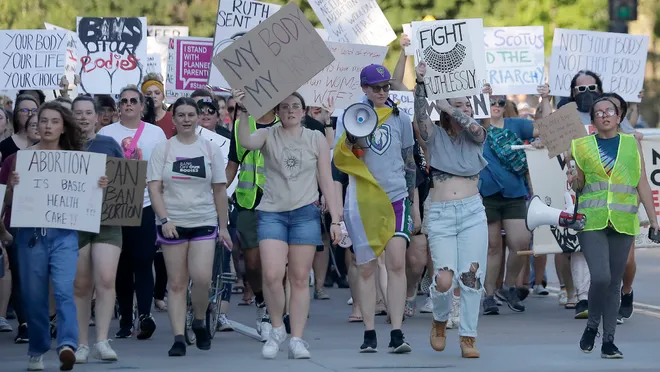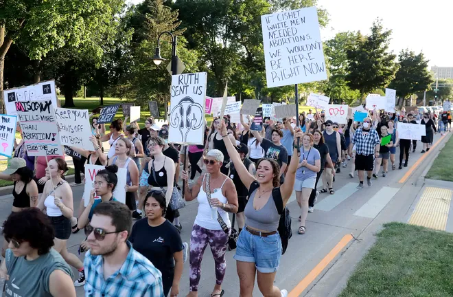 A crowd marches on College Avenue during a protest of the U.S. Supreme Court’s overturning Roe v. Wade, on Friday, June 24, 2022 in Appleton, Wis. The court’s 6-3 decision announced Friday means abortion access will be restricted in about half the states, including Wisconsin. Wm. Glasheen USA TODAY NETWORK-Wisconsin Wm. Glasheen/USA TODAY NETWORK-Wisconsin, Wm. Glasheen