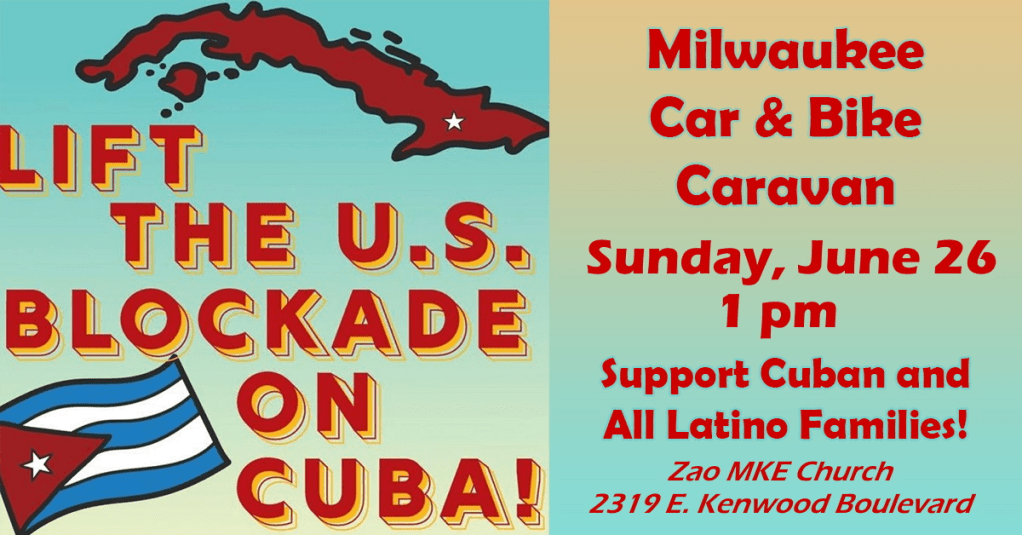 Categories Uncategorized Milwaukee, June 26, 2022: Milwaukee Car & Bike Caravan to Lift the Cuba Blockade Post author By wibailoutpeople Post date June 25, 2022 Event: https://fb.me/e/1Y96hTrsU Share this: Click to share on X (Opens in new window) X Click to share on Facebook (Opens in new window) Facebook Like Loading... Related ← ILWU Union Statement on the U.S. Supreme Court Overturning Roe v. Wade → Milwaukee, June 26, 2022: Reproductive Justice NOW! Rally and March