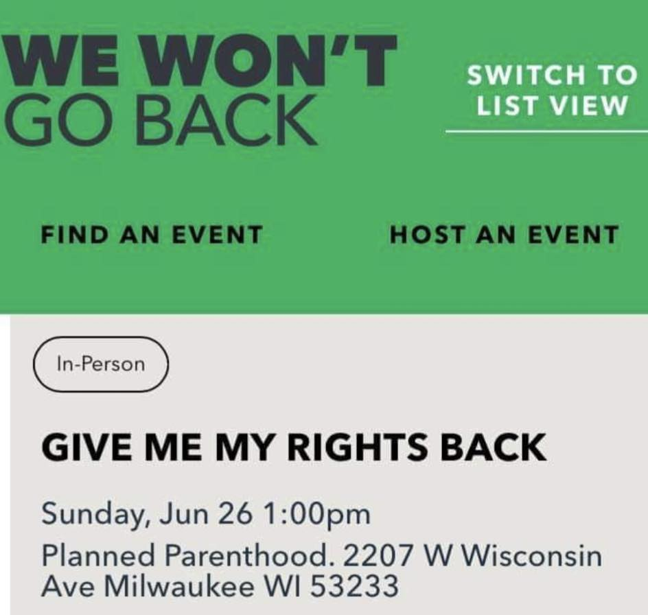 Categories Uncategorized Milwaukee, June 26, 2022: Reproductive Justice NOW! Rally and March Post author By wibailoutpeople Post date June 25, 2022 Share this: Click to share on X (Opens in new window) X Click to share on Facebook (Opens in new window) Facebook Like Loading... Related ← Milwaukee, June 26, 2022: Milwaukee Car & Bike Caravan to Lift the Cuba Blockade → Oshkosh PRIDE June 26, 2022