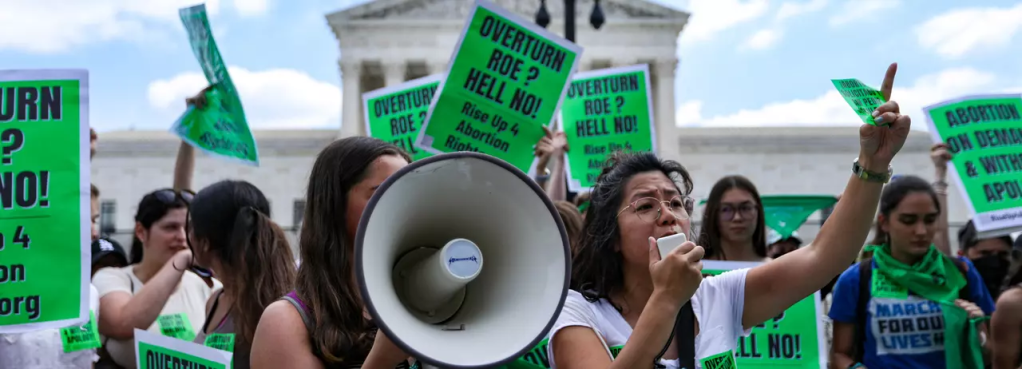 Protesters immediately descended upon the Supreme Court in Washington, D.C. in the wake of Dobbs v. Jackson Women’s Health Organization, a 6-3 decision declaring that “the Constitution does not confer a right to abortion… and the authority to regulate abortion must be returned to the people and their elected representatives.”