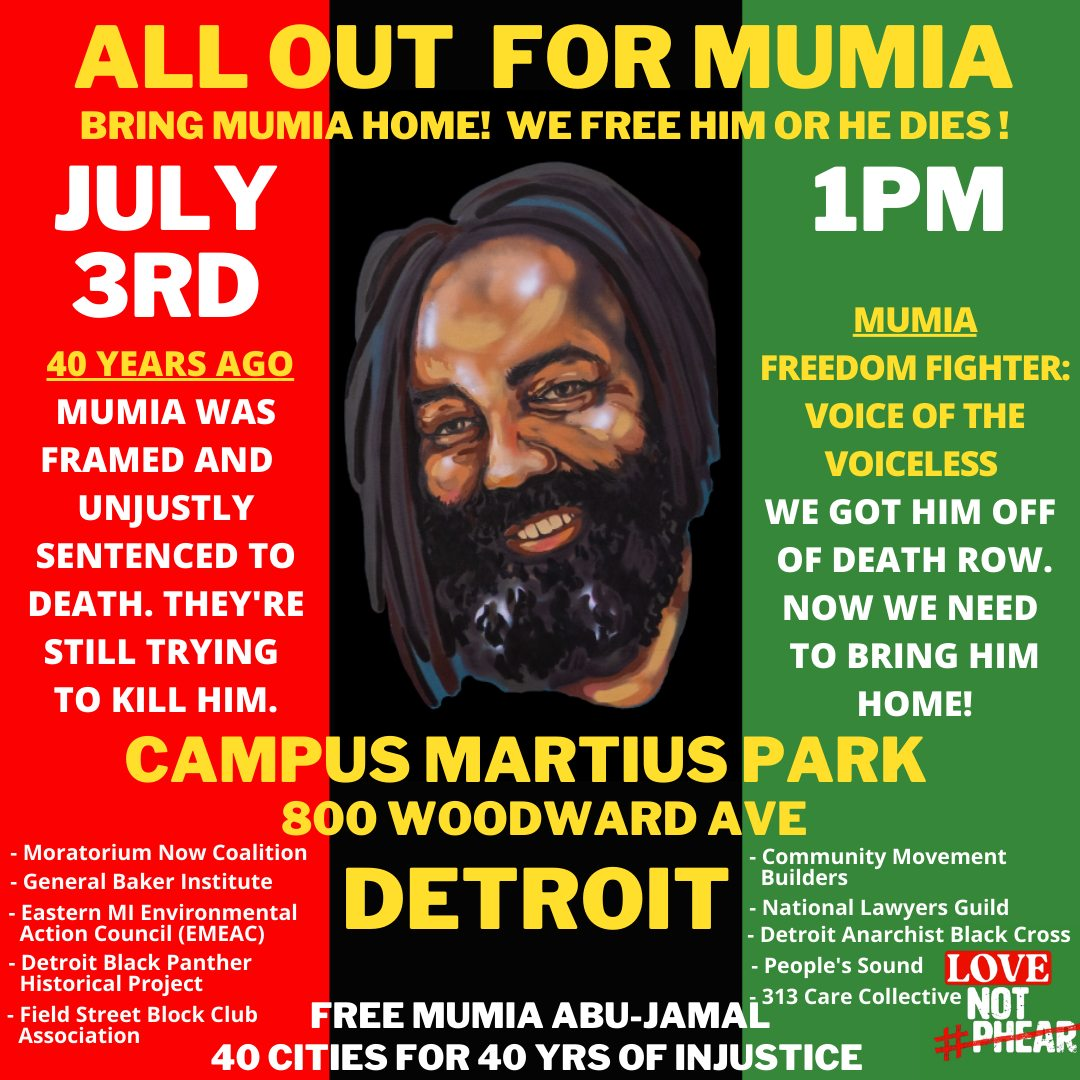 Love Not Phear is calling on 40 Cities to Unite against 40 years of injustice on Sunday, July 3rd, 2022. This marks 40 years since Mumia Abu-Jamal was sentenced to death in Pennsylvania, framed by the government war on Black Liberation activists.