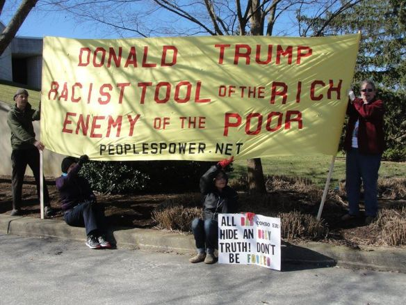 Note: Trump’s appearance (to attempt to recruit a racist, anti-worker base both legal and extra legal) is a part of the white supremacist and anti-worker “American Freedom Tour” which will “feature” capitalist bankers, corporate thieves and Pentagon war criminals. Political servants of the rich such as cops and politicians that have waged war on workers and the oppressed for decades, are also planning on taking part in the “tour.” https://americanfreedomtour.com/events/251