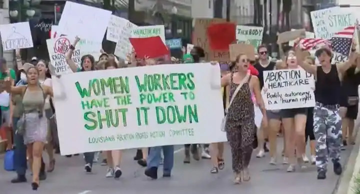 More than 150 people took the fight to restore abortion rights to the streets of New Orleans July 8. We rallied outside the courthouse to send a message to the oil industry-puppet AG Landry and his millionaire cronies: we will not let them go forward with their war on women, trans people, and all workers. We shut down both Canal St. and Loyola Ave. to tell them we’re done with business as usual.