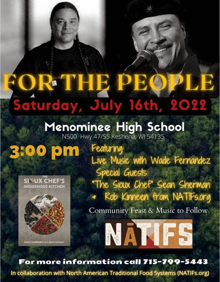 Rocking with my bro Sean Sherman aka the Sioux Chef on my Menominee Rez this coming Saturday! Hope to see our Rez community come out strong for the medicine of music and our traditional foods done up with the appetizing professional presentation for the palette that they deserve! See you there! — with Wade Fernandez-Music