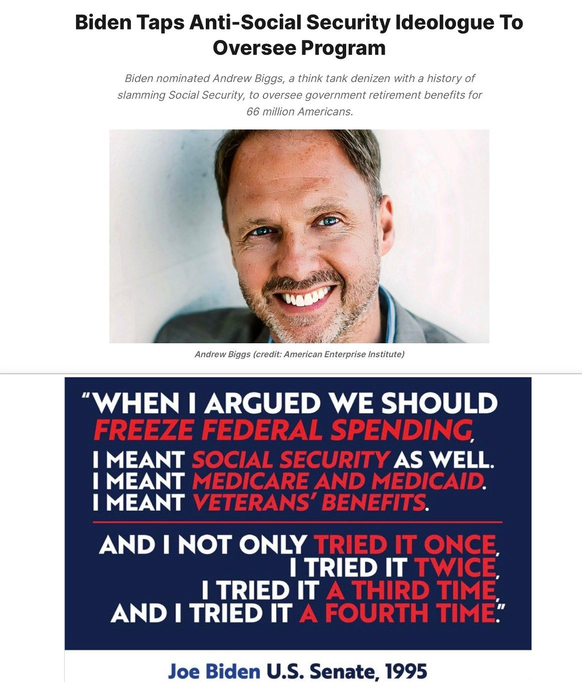 “Andrew Biggs has advocated for Social Security cuts throughout his career. And now, he’s been nominated to oversee Social Security,” Social Security Works tweeted on Tuesday.