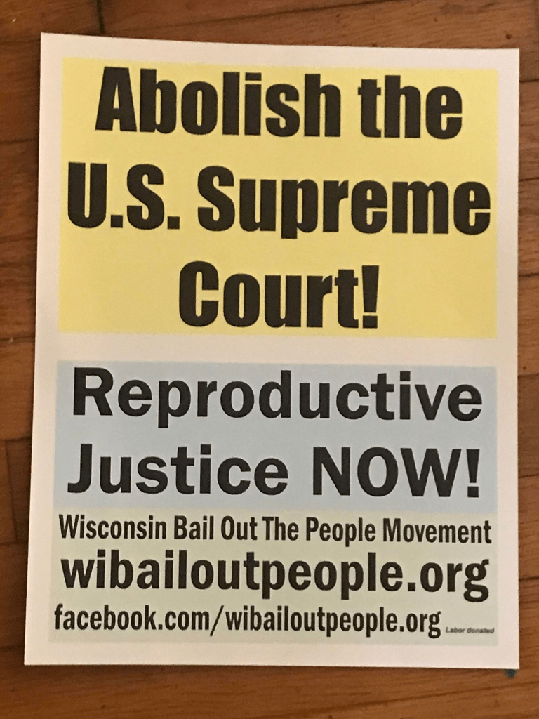 Categories Uncategorized Abolish the Supreme Court! Reproductive Justice NOW! Post author By wibailoutpeople Post date July 14, 2022 Wisconsin Bail Out The People Movement Share this: Share on X (Opens in new window) X Share on Facebook (Opens in new window) Facebook Like Loading... Related ← Michigan Supreme Court Rules in Favor of Moratorium Now Coalition’s Freedom of Information Suit → #40Cities4Mumia #40YearsTooLong Free Mumia Abu-Jamal – Newark Holds Rally in Support of LoveNotPhear Campaign To Free Mumia