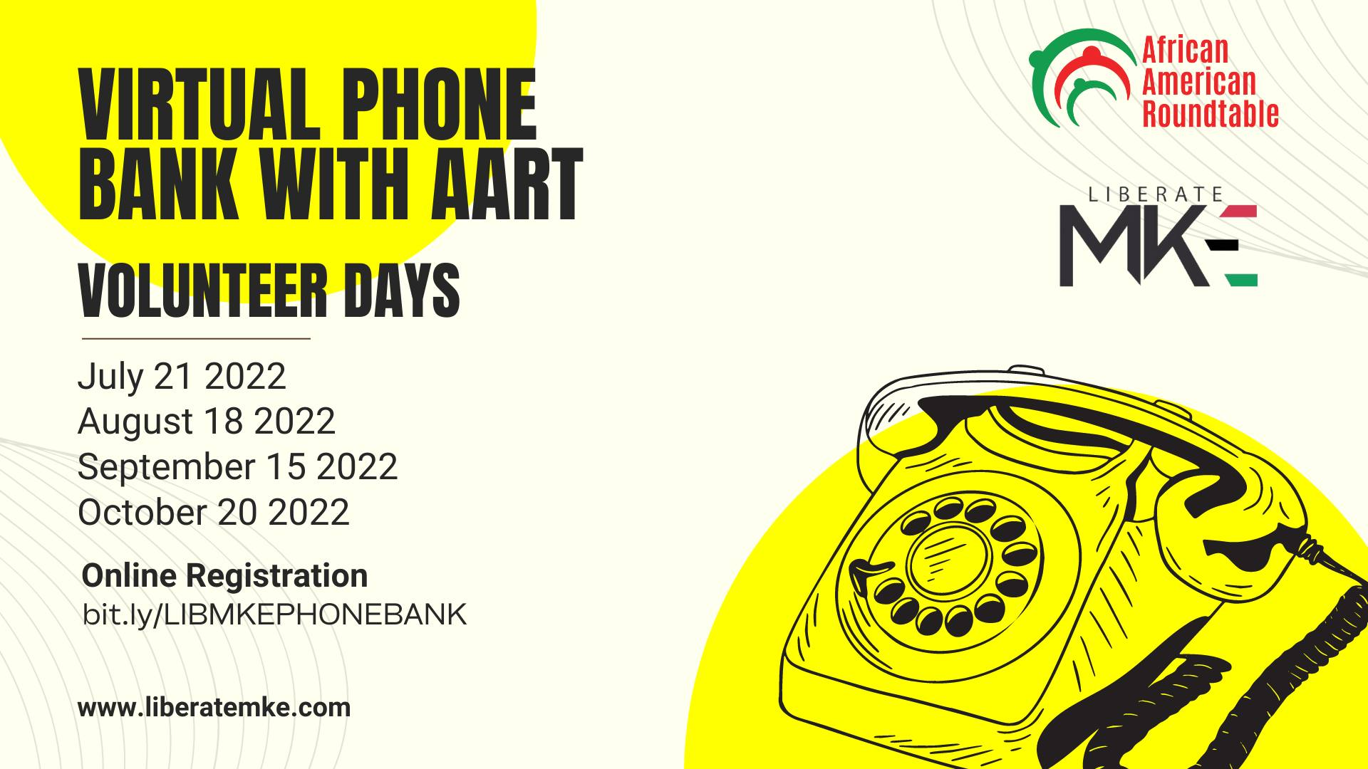Categories Uncategorized Milwaukee: African-American Roundtable – Virtual Phone Banks July – October 2022 (Dates) Post author By wibailoutpeople Post date July 19, 2022 African-American Roundtable African American Roundtable (AART) is a Milwaukee based organization advocating for reduced police budgets and community investment through the #LiberateMKE campaign. We envision a MKE where Black people are organized & transforming local policy. Share this: Share on X (Opens in new window) X Share on Facebook (Opens in new window) Facebook Like Loading... Related ← Nelson Mandela International Day – Cuba & Africa Solidarity! → AKRON BAIL SUPPORT FUND