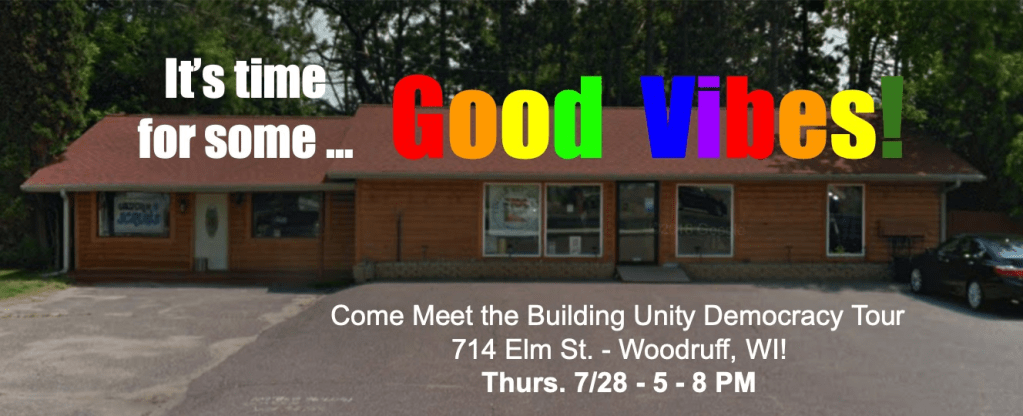 The Building Unity will be making an “All Day Tour Stop” in downtown Woodruff on Thursday, July 28th. Look for us at 714 Elm St in the Parking Lot of “Good Vibes”