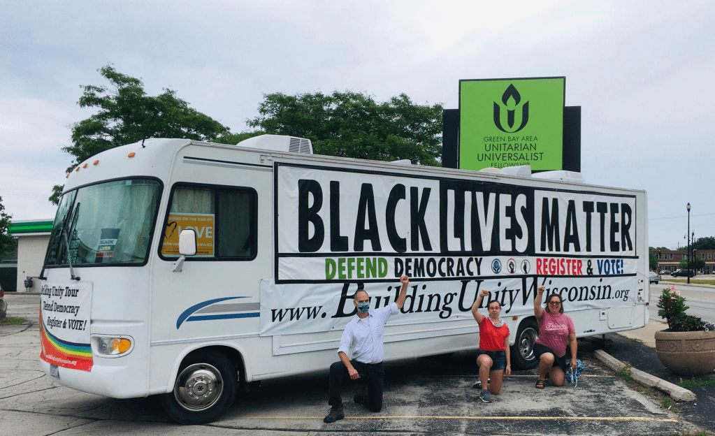 The Building Unity Democracy Tour is a 3-month tour. We are going to every region of Wisconsin. We are sounding the alarm, finding our people, and moving forward with our goal to build a nonpartisan united movement across the state for people, peace, and the planet.