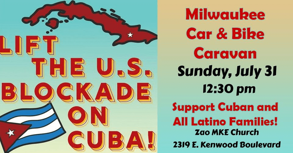 | August Monthly WI Cuba Coalition Meeting — virtual Tuesday, August 9, 2022, 7 p.m. CDT Our WI Cuba Coalition meetings on the 2nd Tuesdays of each month, are currently on Zoom, click on this link: Join Zoom Meeting To join by phone, call (312) 626-6799 Meeting ID: 842 2080 9703 Passcode: 576162 OR E-mail WiCubaCoalition@gmail.com to request a link to the Zoom meeting. We welcome all those who support ending the U.S. economic blockade/embargo and favor normalized relations between our two nations, including normal two-way travel and trade and allowing US people to send remittances, as with other countries. |
