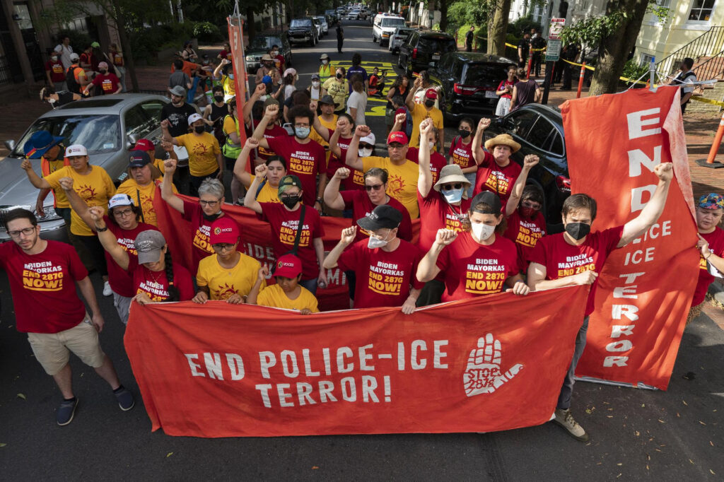 Over a hundred immigrant rights activists staged an action outside the home of Department of Homeland Security (DHS) Secretary Alejandro Mayorkas early Monday morning to send a message to Mayorkas and President Joe Biden to stop deputizing local police for immigration enforcement.