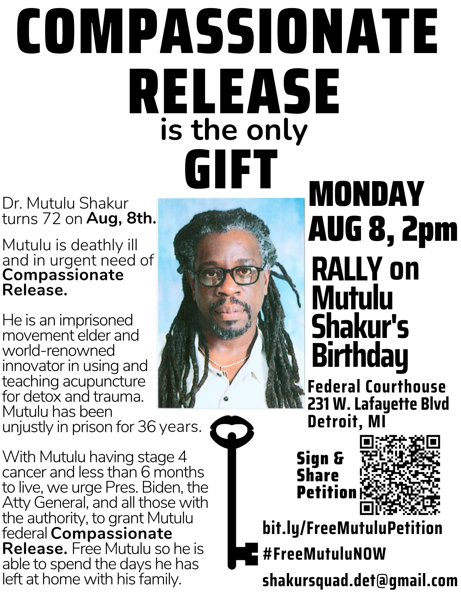 Categories Uncategorized Detroit, August 8, 2022: We Demand the Compassionate Release of Dr. Mutulu Shakur NOW! Post author By wibailoutpeople Post date August 7, 2022 Moratorium NOW! Coalition Share this: Click to share on X (Opens in new window) X Click to share on Facebook (Opens in new window) Facebook Like Loading... Related ← Treaty People Convergence August 5-7, 2022 – Twin Ports to Bad River → The Cuban people of Matanzas need our help