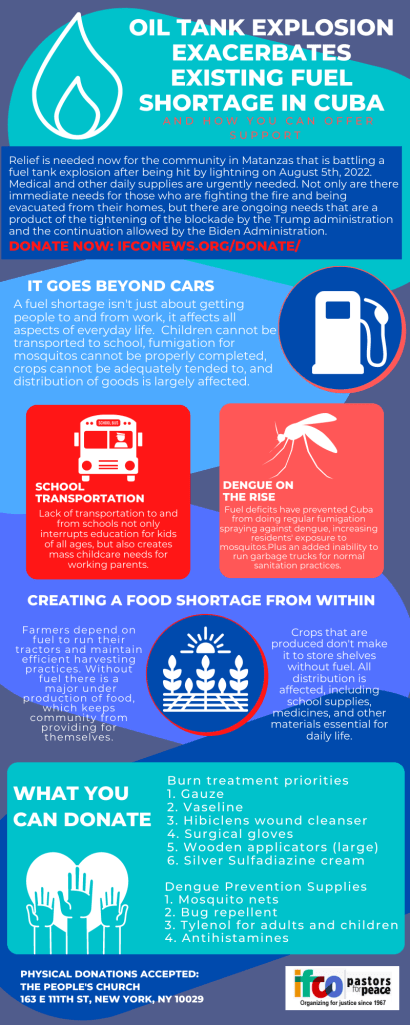 Categories Uncategorized Fire & Then Fuel Shortage in Cuba – How to Help Post author By wibailoutpeople Post date August 11, 2022 Send a check to PO box 1368, Orange NJ 07051-1368 Make a donation online: https://ifconews.org/donate/ Share this: Click to share on X (Opens in new window) X Click to share on Facebook (Opens in new window) Facebook Like Loading... Related ← Fighting Words! Coverage From the Front Lines of the People’s Struggles! → Joanne Shenandoah Matriarch Iroquois Womens Songs