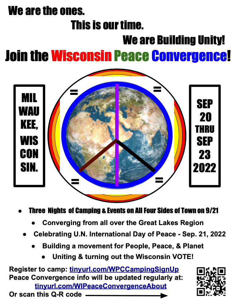 Also, please note: After the WI Peace Convergence, many participants will travel by bus to attend the Chicago manifestation of the 9/23/22 Global Climate Strike.