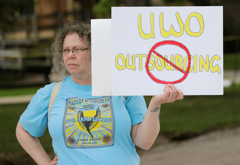 UW Oshkosh came together September 6, 2022 to stand against the outsourcing of our custodial crew. Outsourcing Hurts Us, We Must Defend Our Workers! ![]()