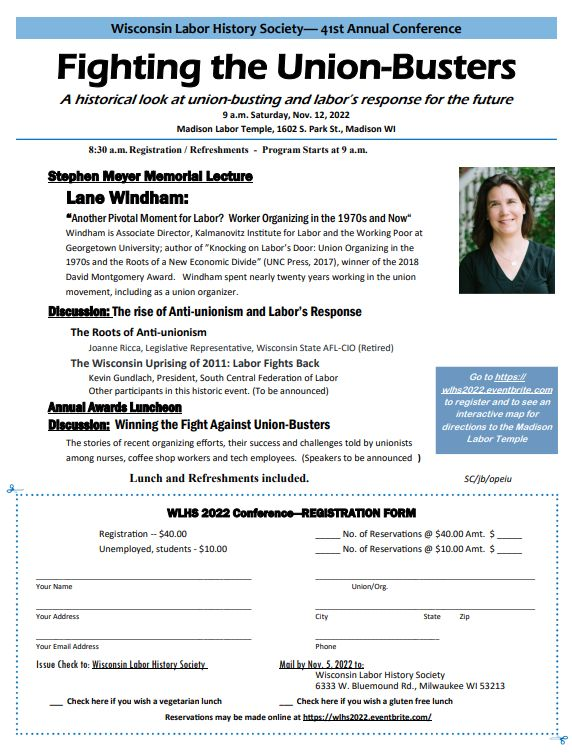 The Wisconsin Labor History Society‘s 41st Annual Conference is coming up on Saturday, November 12th beginning at 9am in Madison.